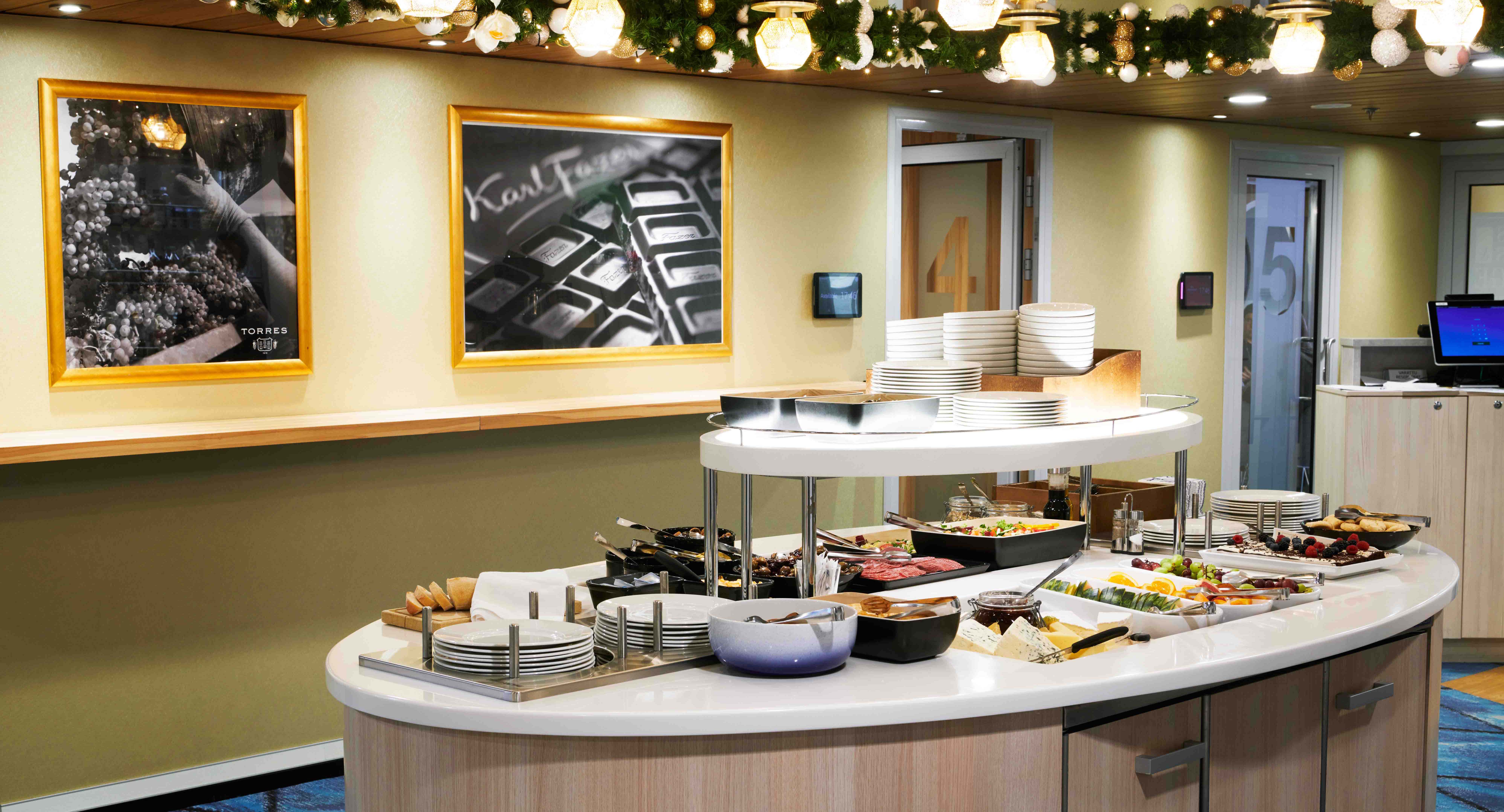 يتوفر التراس الشمسي الأكثر متعة خلال فصل الصيف في Nar Laituri. مع أكثر من 400 مقعد، يقدم Bar Laituri المشروبات الباردة والآيس كريم للركاب.